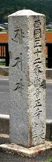 | 戦国時代の世の中で、北陸・関東地方の武士たちは、すでに日本を治める力を失った足利将軍の室町幕府を倒して、自分が天下をとろうとねらっていた。このため、室町幕府の近江守護職に任ぜられていた佐々木六角定頼は、すでに砦を築いていた観音寺山に本格的な城郭を建てて、東山道(中山道=今の国道8号線)を京都へ向かう軍勢を見張っていた。観音寺城は山全体に石垣を築いて要塞とした大規模な山城で、当時の城の遺構がよく保存されているため、昭和57年に国の史跡に指定されている。また、城跡への途中にある寺は、木造千手観音(室町時代の作。重要文化財)を本尊とする観音正寺で、城を護る役割をしていたようである。 西国32番の霊場である。 安土町 | 西国32番観音正寺従是 拾五町 |