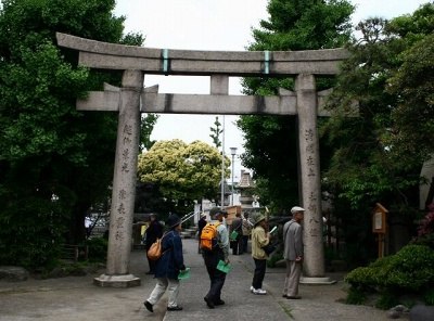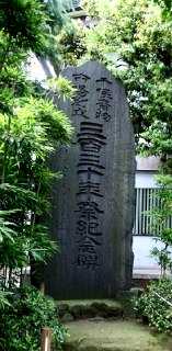 | 明治39年5月22日千住市場創業330年の祝賀祭が盛大に挙行された。その模様は広場に330台の盤台を積み上げ神宮皇后の山車と大蕉の山車を造り各々に太鼓を備え付けこれを打鳴らして町中を引き廻した。他に千貫神輿と呼ばれる大神輿を二天で担ぎ少年は中神輿、子供は小神輿の三基の神輿が市場中を練り歩いた。神社境内には4mもの記念碑を「浅草北口睦」の17名の人達が建立した。「浅草北口睦」とは吉原遊郭を中心にして南千住寄り一帯で橋場、今戸、吉野、地方今戸、日本堤などの青果商の同業組合である。記述の頭取とは会長、組合長で伍長は取締幹事長の様な役職である。因みにこの祭りで問屋が三軒潰れた。昔からやり出したらとことんやるのが河原気質と云いお祭りともなれば当番の問屋が2、3軒潰れた。千貫神輿は現存する。 河原稲荷神社 | |||